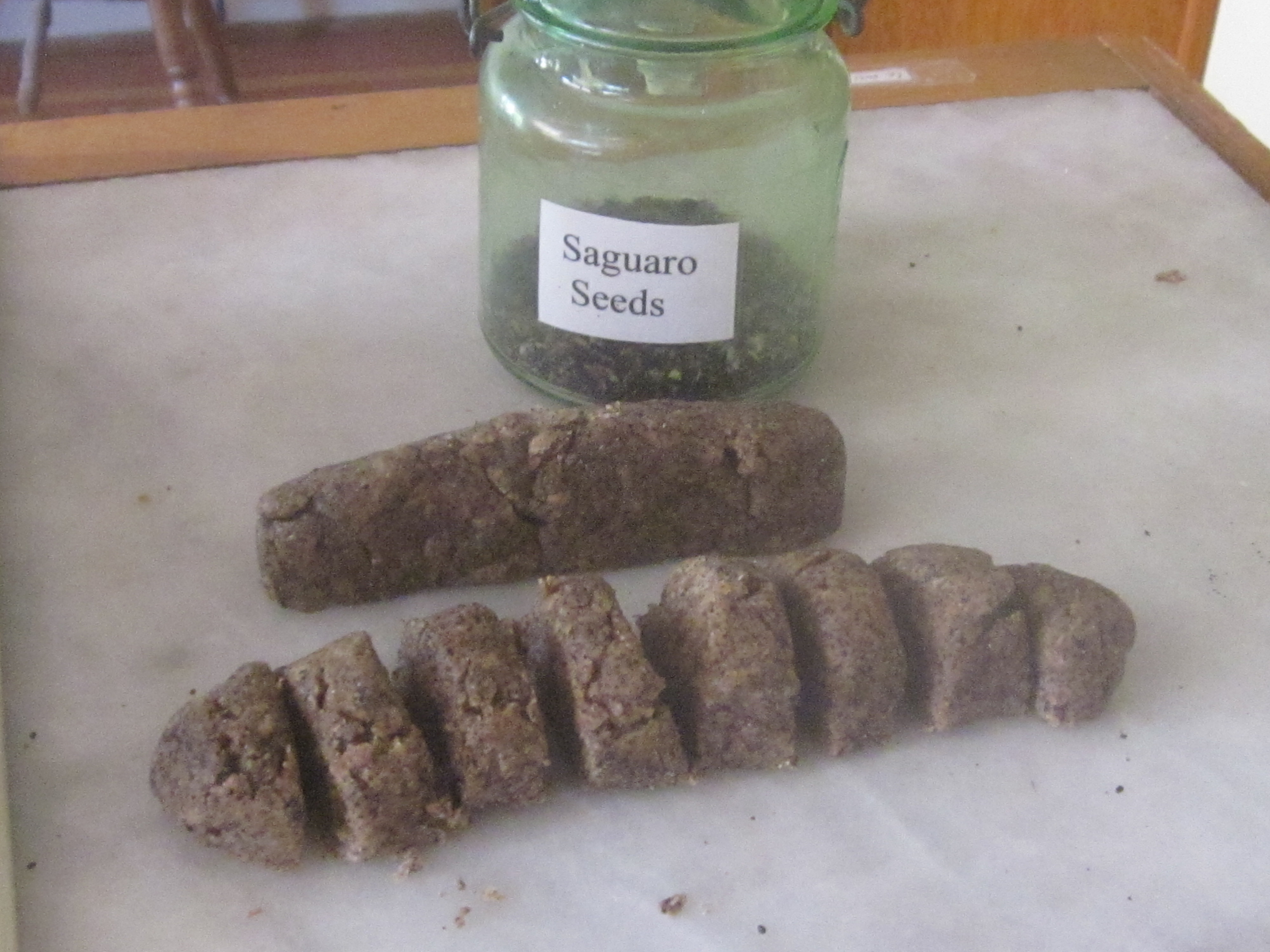 Preheat oven to 400 degrees. Grind the 1/4 cup saguaro seeds in a blender or coffee grinder. In a large bowl, combine seeds, flour, baking powder, salt and sugar. Add water, vinegar and oil and mix, stirring and kneading until a stiff dough forms.