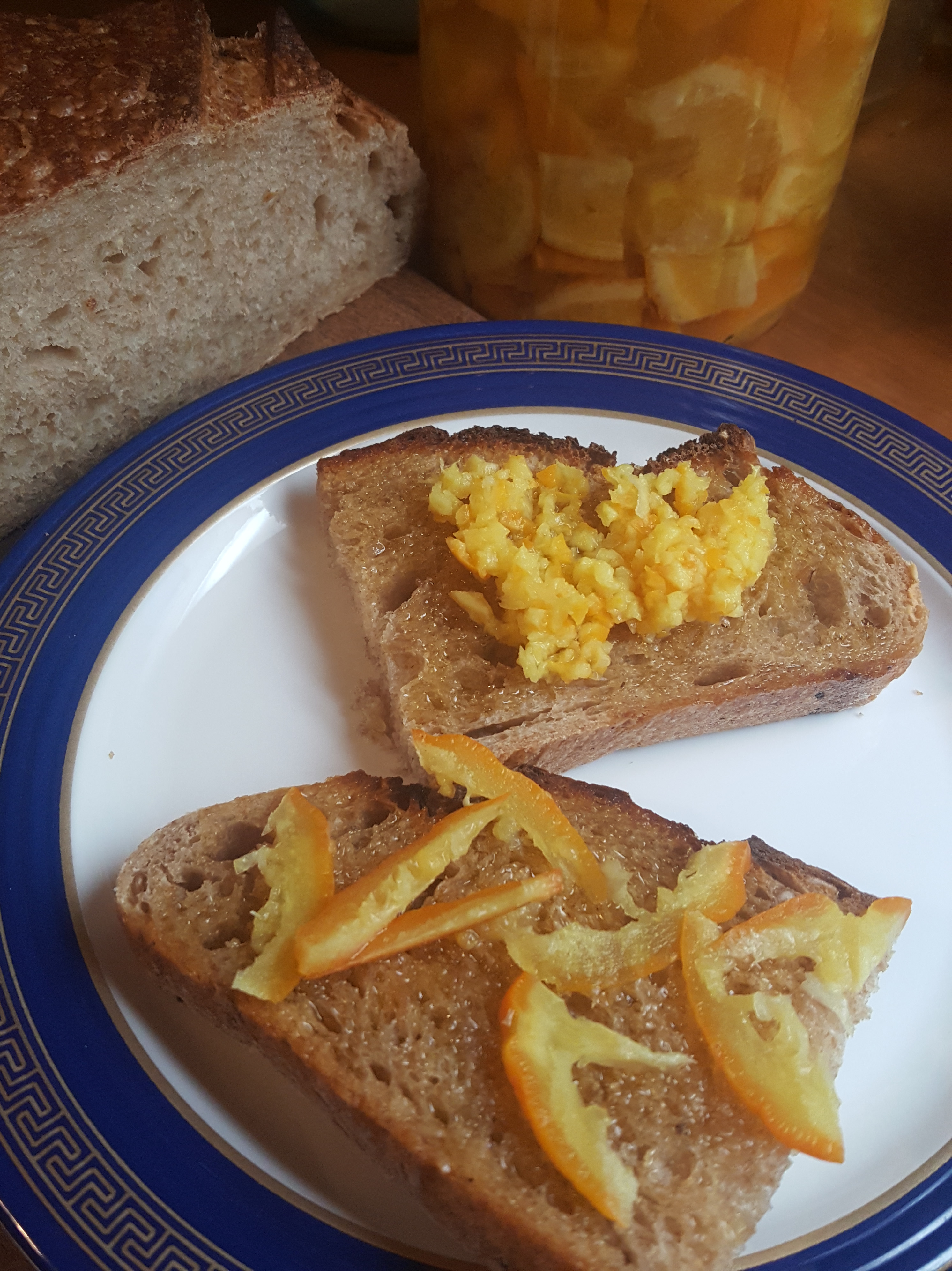 Nourishing Traditions by Sally Fallon has a recipe for a fermented Orange or Kumquat Marmalade, so I had to try.