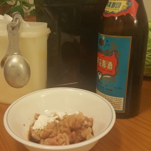 Then beat eggs, cornstarch and a splash of water. Next time I’ll mix the cornstarch and water before the eggs to prevent difficult to remove lumps.