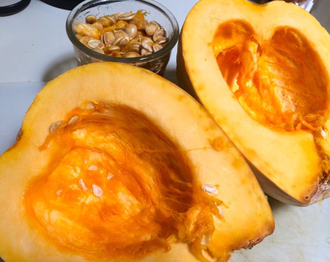 Shiny Mayo Blusher (Cucurbita maxima)  seeds washed, dried, ready to save for planting–or to roast as a healthy snack