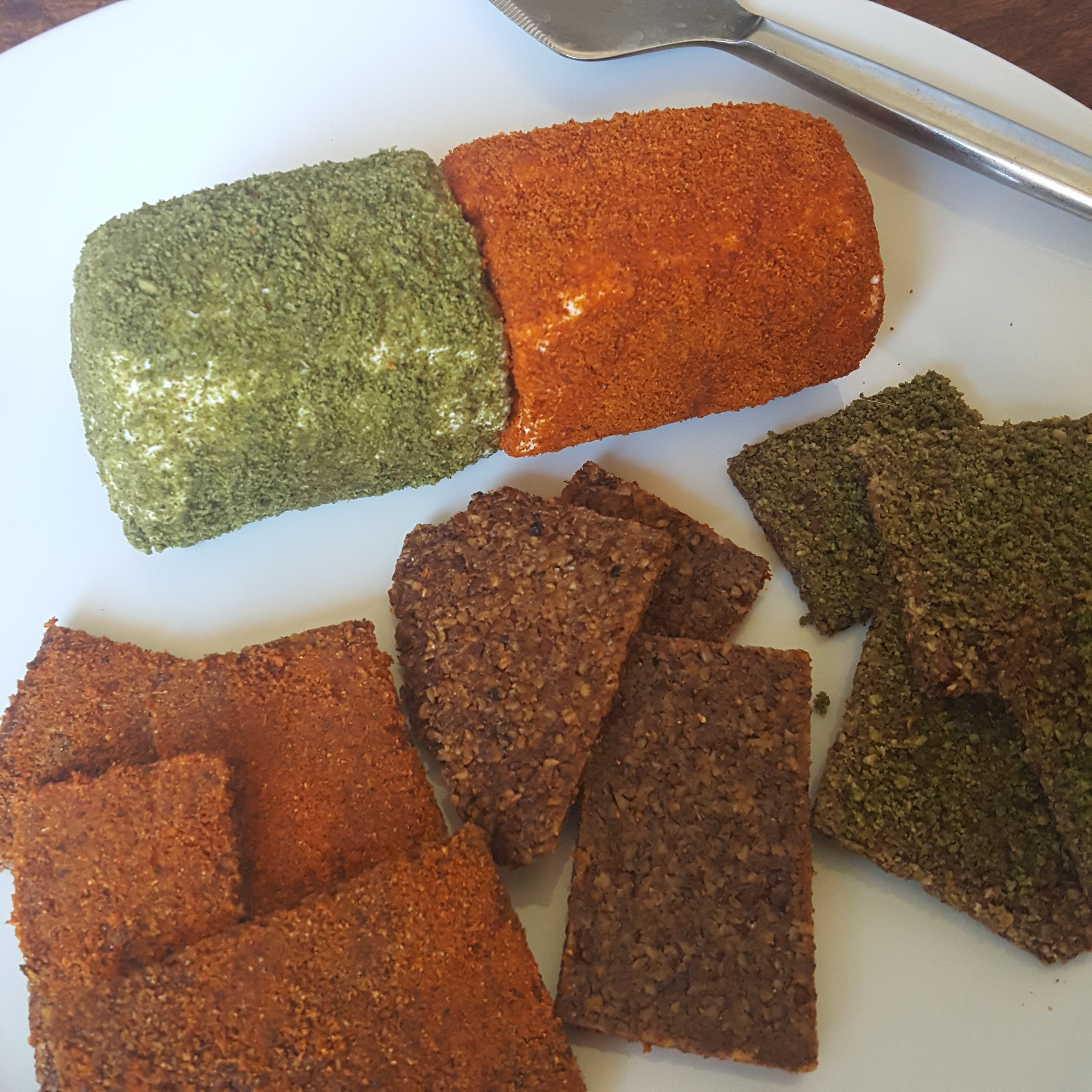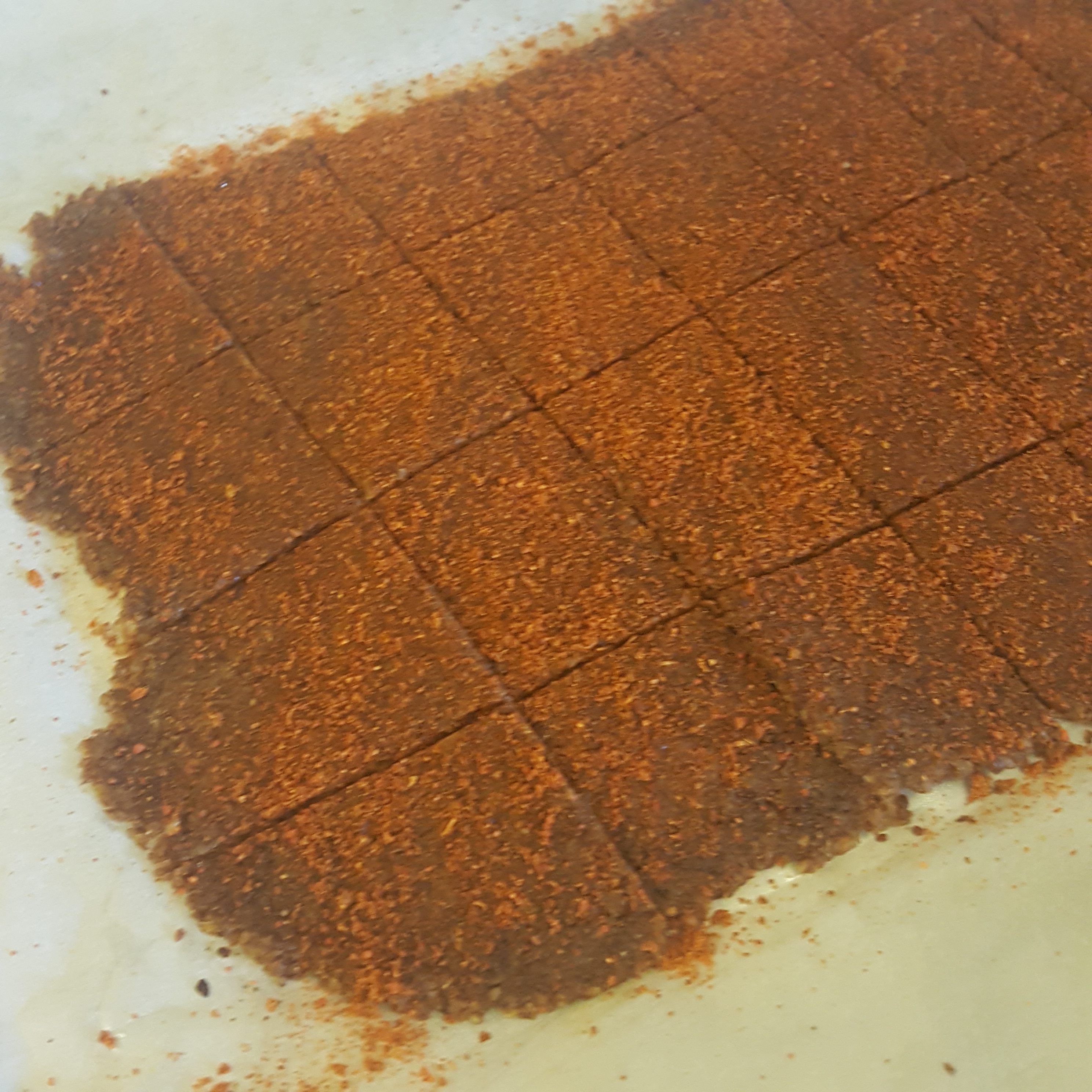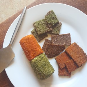 To accompany it, I wanted to make something special. Pecan crackers are delicious yet easy, and can be made with entirely local ingredients. Green Valley Pecan Company in Saguarita, just south of Tucson, sells finely ground pecans, which I use in the Mole Negro. Almond meal works just as well as pecan in this recipe. In other batches, I’ve added some mesquite meal, acorn meal, barrel cactus seed, chia seed, sesame seed, amaranth seed, and/or cracked wheat. Use what you collect!