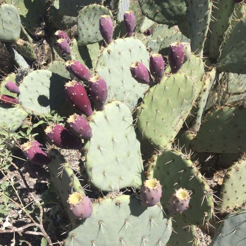 Prickly pear fruits (i:bhai in Tohono O’odham, tunas in Spanish, Opuntia engelmannii) add landscaping color and a feast for wildlife. They ALSO are important traditional medicine with their complex carbs used for sustained energy, blood-sugar balance and high available calcium for preventing and treating osteoporosis. (MABurgess photo)
