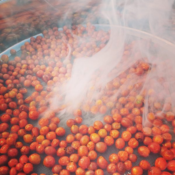 Because of the nature of wild supplies (that would be Mother Nature), Chad’s stock varies with the season. Through the year he will have granola made with acorns and mesquite, hot cocoa mix made with cacao and powdered mushrooms, and something he calls “nopaliditos,” salt-cured nopal or prickly pear pads. They are reminiscent of the saladitos beloved of Tucson kids. He adds flavor to our native chiltepines by smoking them over mesquite. Chad doesn’t confine himself to the desert; summer finds him in the pine forests looking for mushrooms and plants that grow in the higher altitudes. (No worries about the mushrooms–they are for his own use. The mushrooms in his products come from reliable commercial sources.)