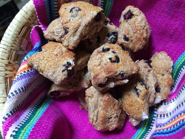 Getting in the heirloom grain mood–and fortified with fruits picked up on recent travels–I dived into baking scones using local flours.  Here are my recipe variations on scones in honor of the event: