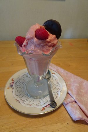 If you don’t have an ice cream maker, transfer to a bowl and freeze until nearly hard. Break up and beat with an electric mixer. Beat whipping cream until stiff and fold into the fruit mixture. Refreeze until hard.