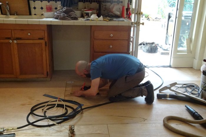 All of my kitchen appliances, including the stove from the dismantled island, are sitting on the back patio as two workers go about putting in a new kitchen floor in our 100-year-old house. Forty-two years ago, my mother-in-law Dorothy and I spent days on our knees scraping off linoleum and the black gunk beneath to reveal the reddish fir floor underneath. But that has begun to splinter, and its time is up.