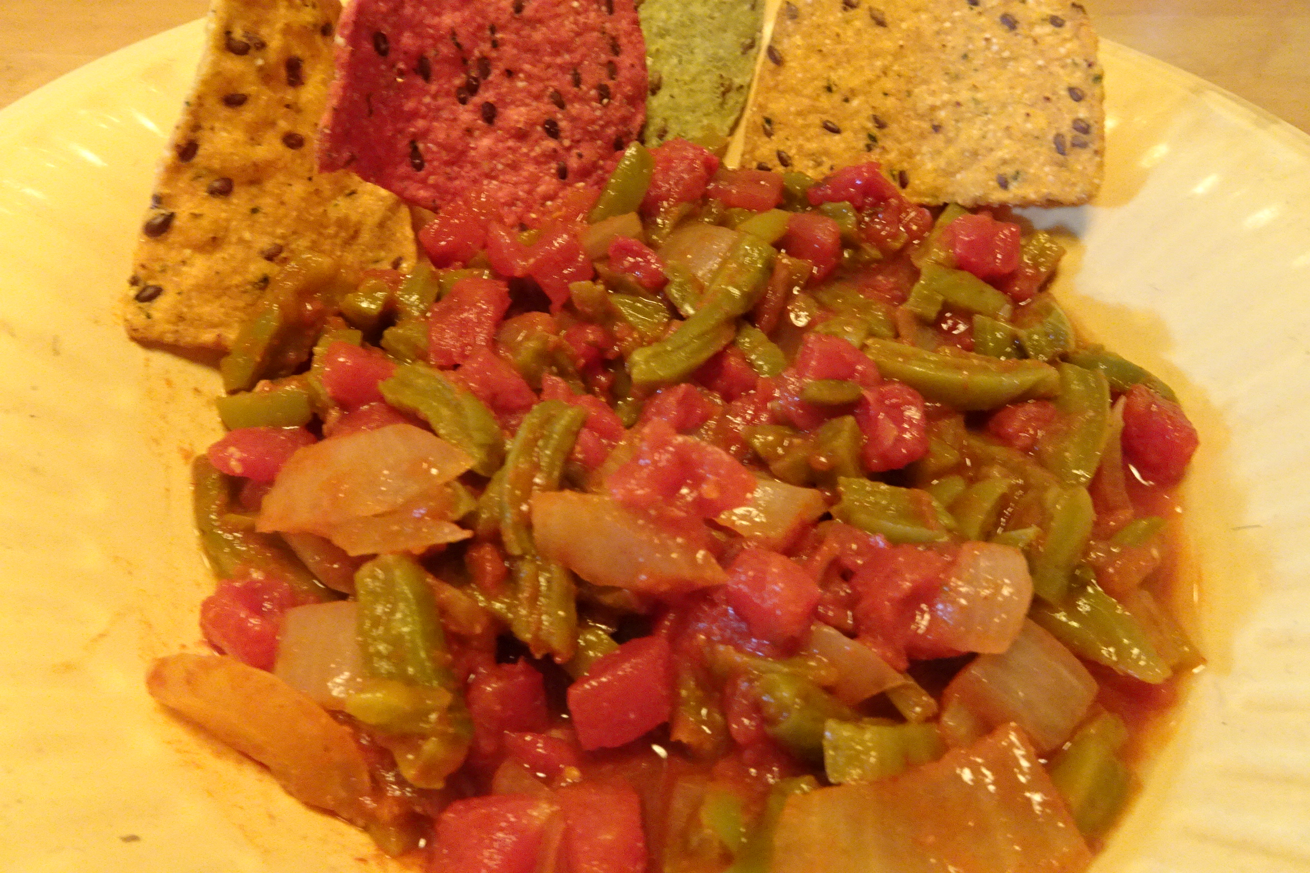 Back in our “seminars,” someone would be chosen to present what subject they were working on. By the time of those meetings, I had already published my first cookbook, then called American Indian Food and Lore, now republished as American Indian Cooking: Recipes from the Southwest. I had done the research by traveling around the Southwest talking to Native American women and gathering recipes from them. At this weekend’s potluck, my friend Nancy Ferguson surprised us by bringing a recipe from that first cookbook, Beavertail Stew. No beavers are in this dish! The name comes from a nickname for prickly pears because the big flat leaves resemble a beaver’s tail. I haven’t heard that nickname recently, but this book was researched fifty years ago.
