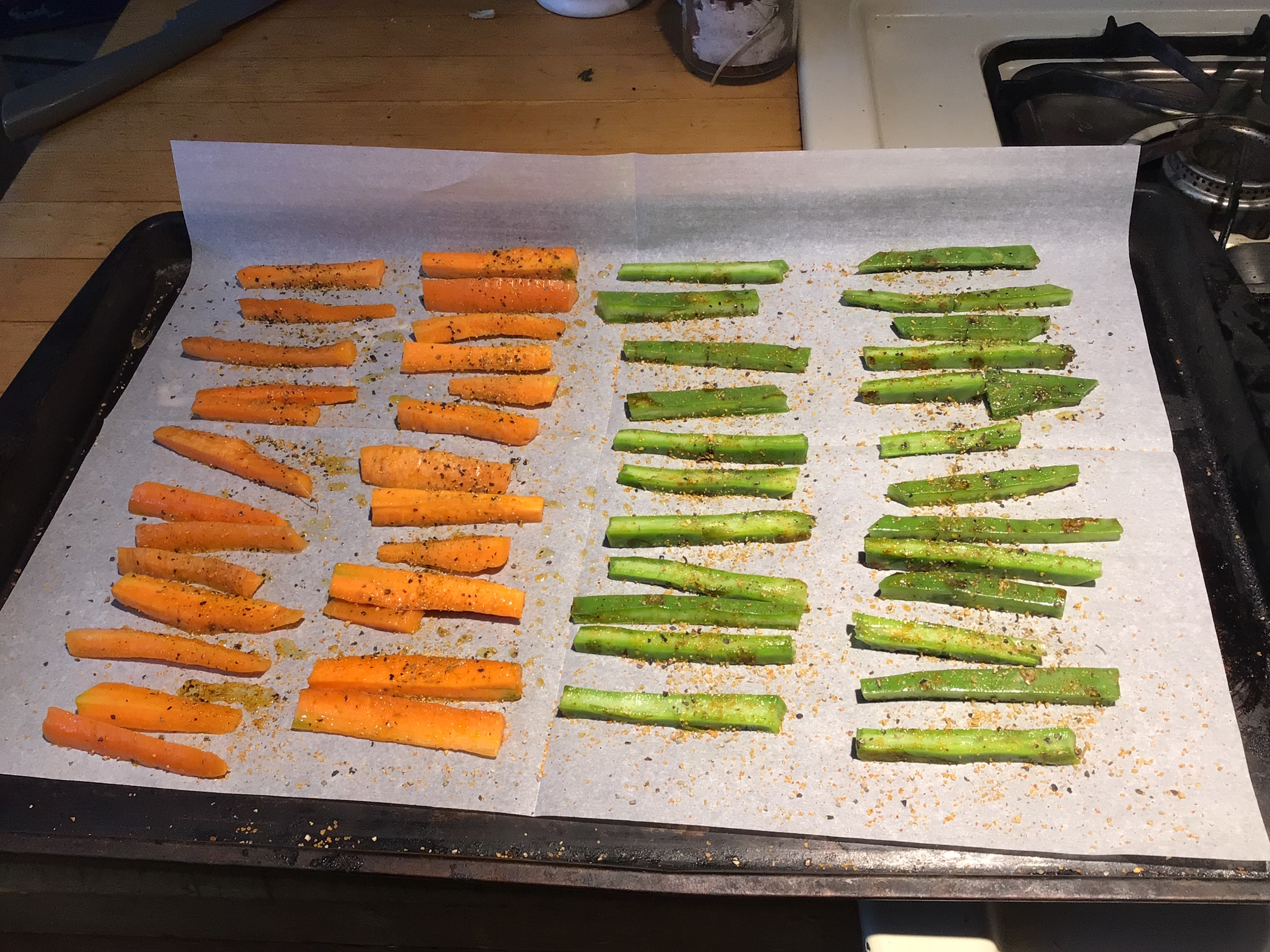 Tip: After roasting, I realized that the cactus pieces had shrunk to half the size of the carrots, changing the proportions of the dish. I suggest using twice the amount of cactus to other vegetables.