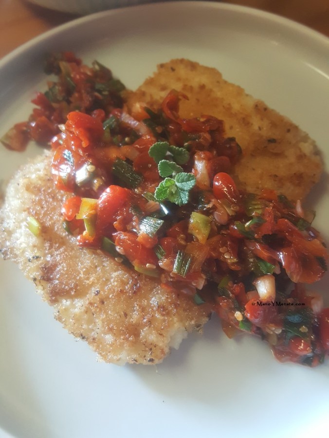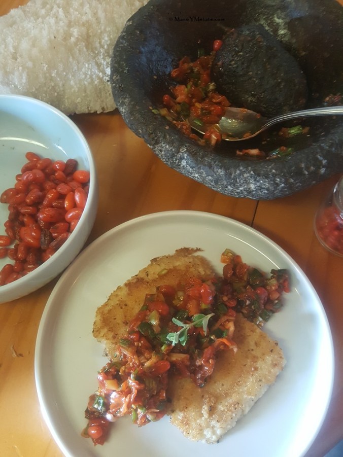 When making Mano Y Metate mole powders, I sift the largest particles from the lime treated masa meal. I’ve been making this leftover coarse meal into a mush and frying it. From frozen to crispy in the time it took to make the salsa.