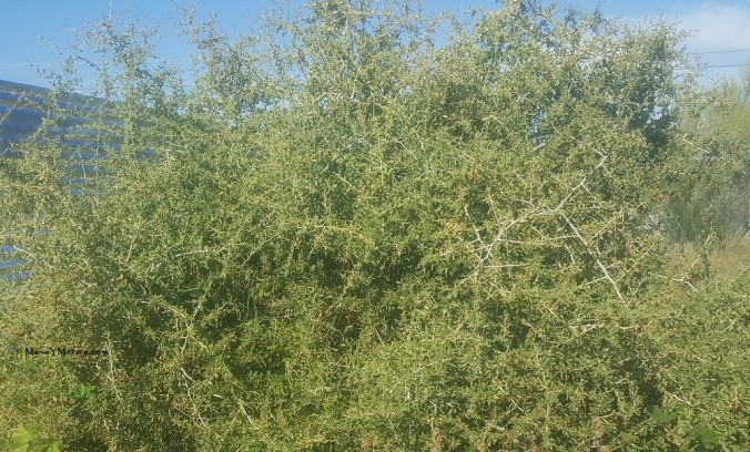 I planted a one gallon container wolfberry bush in a water harvesting basin on a dry corner of the yard in 2015. That first summer I watered it sporadically, then after that I left it alone to compete with the grass and weeds. Five years later, it’s a seven foot tall by seven foot wide bird sanctuary. Wolfberry certainly once grew wild on this land, in the floodplain of the Santa Cruz River, about a third of a mile from the current channel.