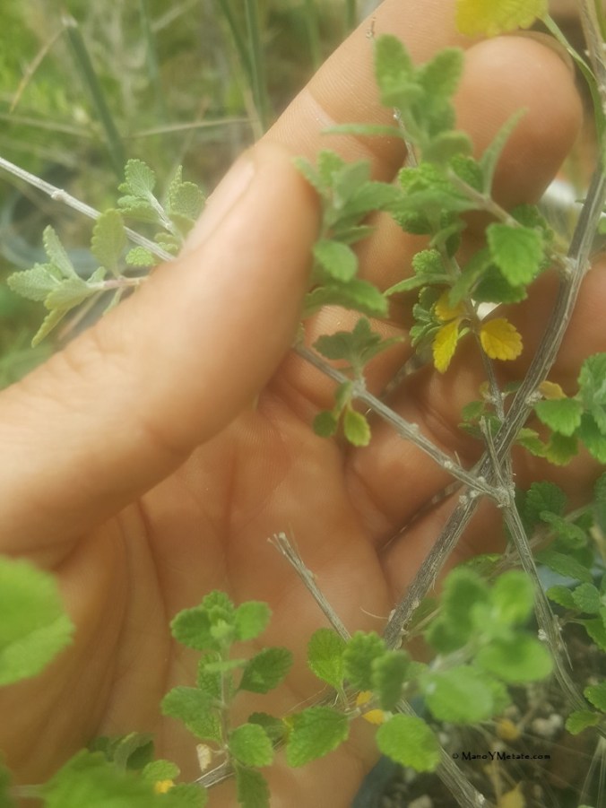 Our Tucson wild oregano, oreganillo, is also known as Aloysia wrightii or Wright’s beebrush. It tastes somewhat like Mediterranean Mint family oregano, somewhat like other Verbena family Mexican oregano species. It definitely has a lemony scent that I sometimes catch in the breeze before I spot the scraggly plants hiding in plain sight in the wild. The leaves never get much larger than this.