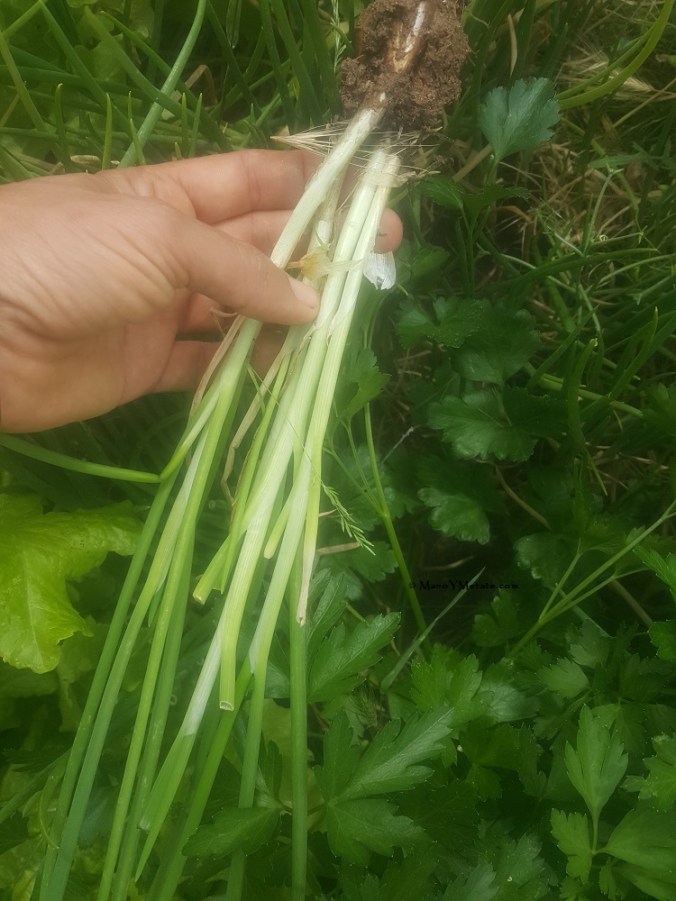 In the absence of fresh tomatoes, I decided to make a salsa. Also in the yard are I’itoi’s bunching onion.