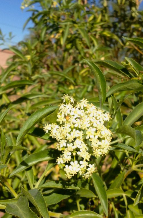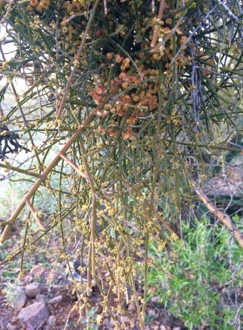 Hello friends, Amy here enjoying another great year for the wolfberry bush (Lycium fremontii …I think) in my yard. Tucson’s native species of the Chinese goji berry, they are similarly packed with antioxidants and health benefits. In the tomato family, it’s called tomatillo in Spanish, not to be confused in size, shape, color or taste to the garden variety of husked ground cherries that go by that name. Wolfberries taste somewhat like tomatoes and work well in sweet and savory dishes, when I manage to harvest more than I eat raw from the bush. Thriving on only rainwater, one huge plant produces plenty of fruit for me and the resident phainopeplas.