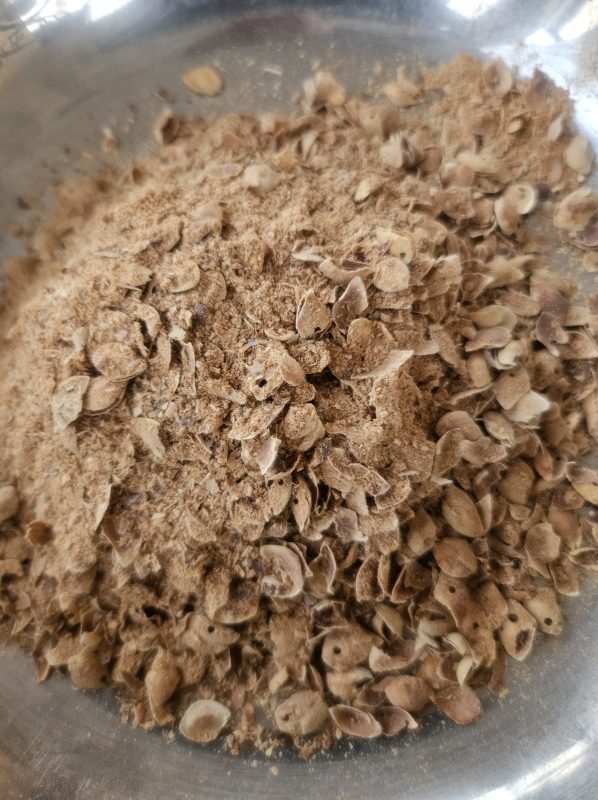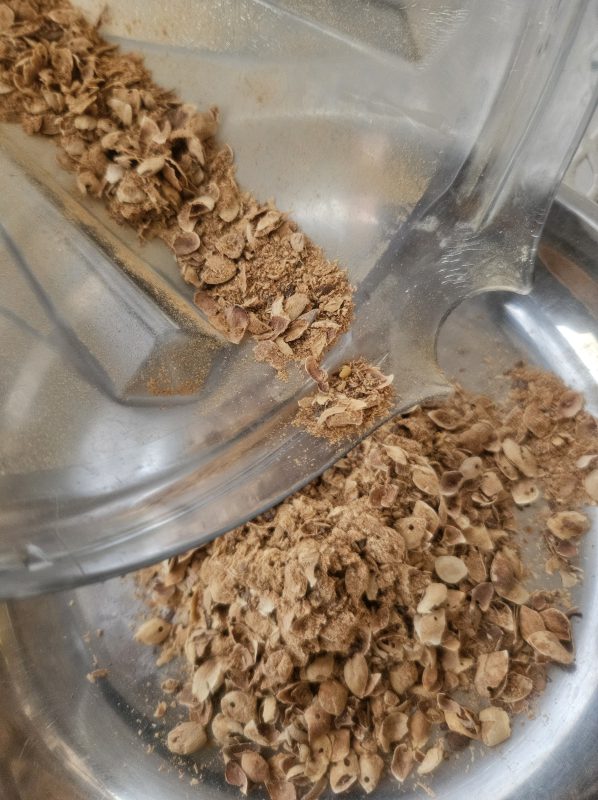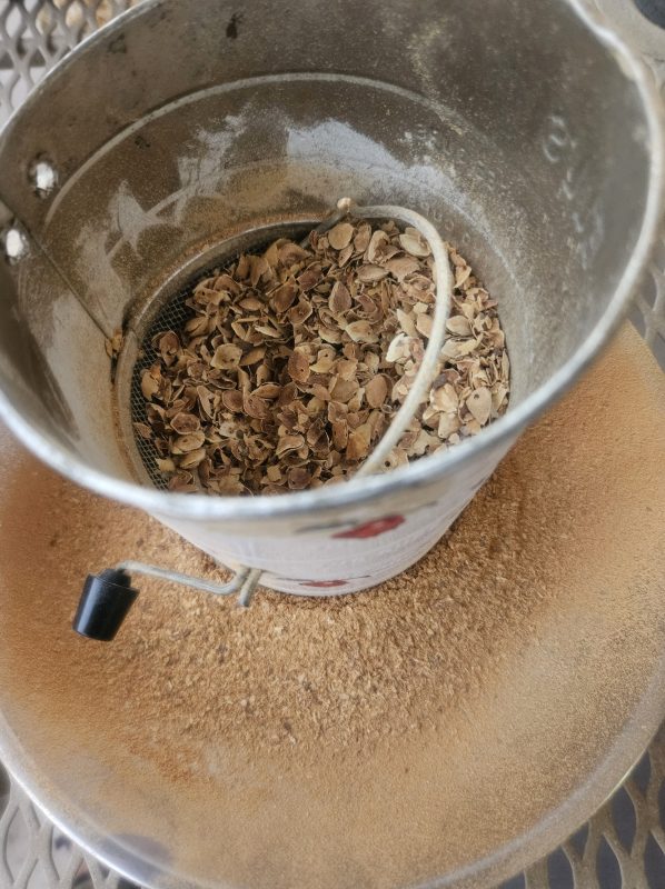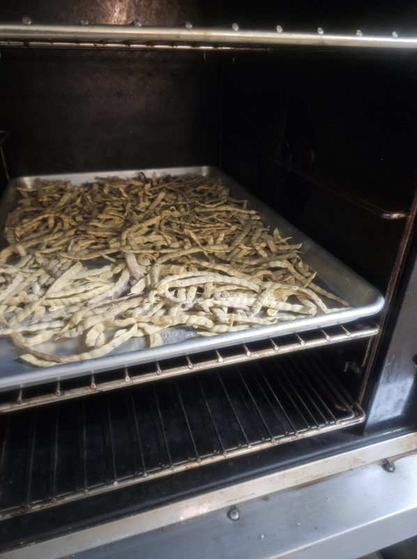 Drought makes for patchy harvesting, but I had a stash of pods. The trick to making HOME grinding work, especially in humid weather, is to toast the pods RIGHT before grinding. No community mesquite pod milling event near you? Need that mesquite meal TODAY? No problem!