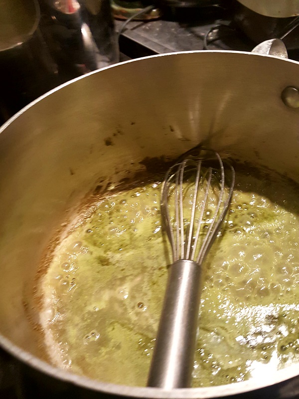 Bring about two cups of water to a boil in a small saucepan and add the piloncillo. Turn off the heat and let the sugar dissolve. If you can’t find piloncillo, use 8 ounces of dark brown or turbinado sugar.