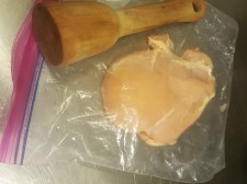 Start with a whole chicken breast in a heavy duty plastic bag.