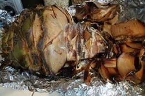 The many varieties of prickly pear put out their new growth when the spring warms up. All prickly pear pads are edible (meaning they not only won’t kill you but in this case are very nutritious), but they are only appropriate for food when they are new. After about six weeks, they develop a fibrous infrastructure. The easiest kind of pads to prepare are those from the large Mexican variety of prickly pear that do not grow wild north of Mexico. You can grow them in your yard if your winter doesn’t bring much freezing. Or you can get them at a Mexican grocery story. They are called Ficus indica or sometimes Burbank because Luther Burbank did some breeding work on them. The wild cactus pads are also delicious, but harder to prepare because of the abundance of spines.