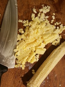 5. After a couple days, the corn will grow a little radical (root) and first shoot. This is very exciting! In three or four days, when nearly all the corn’s roots are about ½–1 inch long, it’s ready to grind.