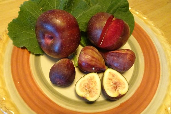 Making the jam couldn’t be easier. Cut the plums and figs into half-inch chunks and combine with the sugar and lemon juice. Bring to a low simmer. Stir occasionally, making sure it doesn’t scorch. Cook until a thermometer registers 220 degrees F. If it seems plenty thick at 218 degrees, you can stop there. Ladle into clean, boiled jars. This makes less than a pint so you probably don’t need to seal the jars; you’ll eat it up quickly.