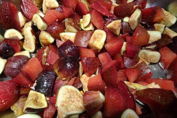 Cut the figs and plums into half-inch chunks.