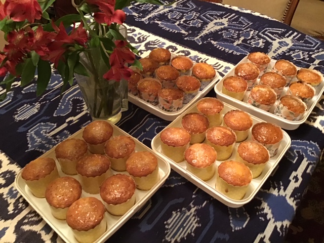 Five dozen Seville orange cupcakes ready for transport to the Mission Garden Citrus Fest.