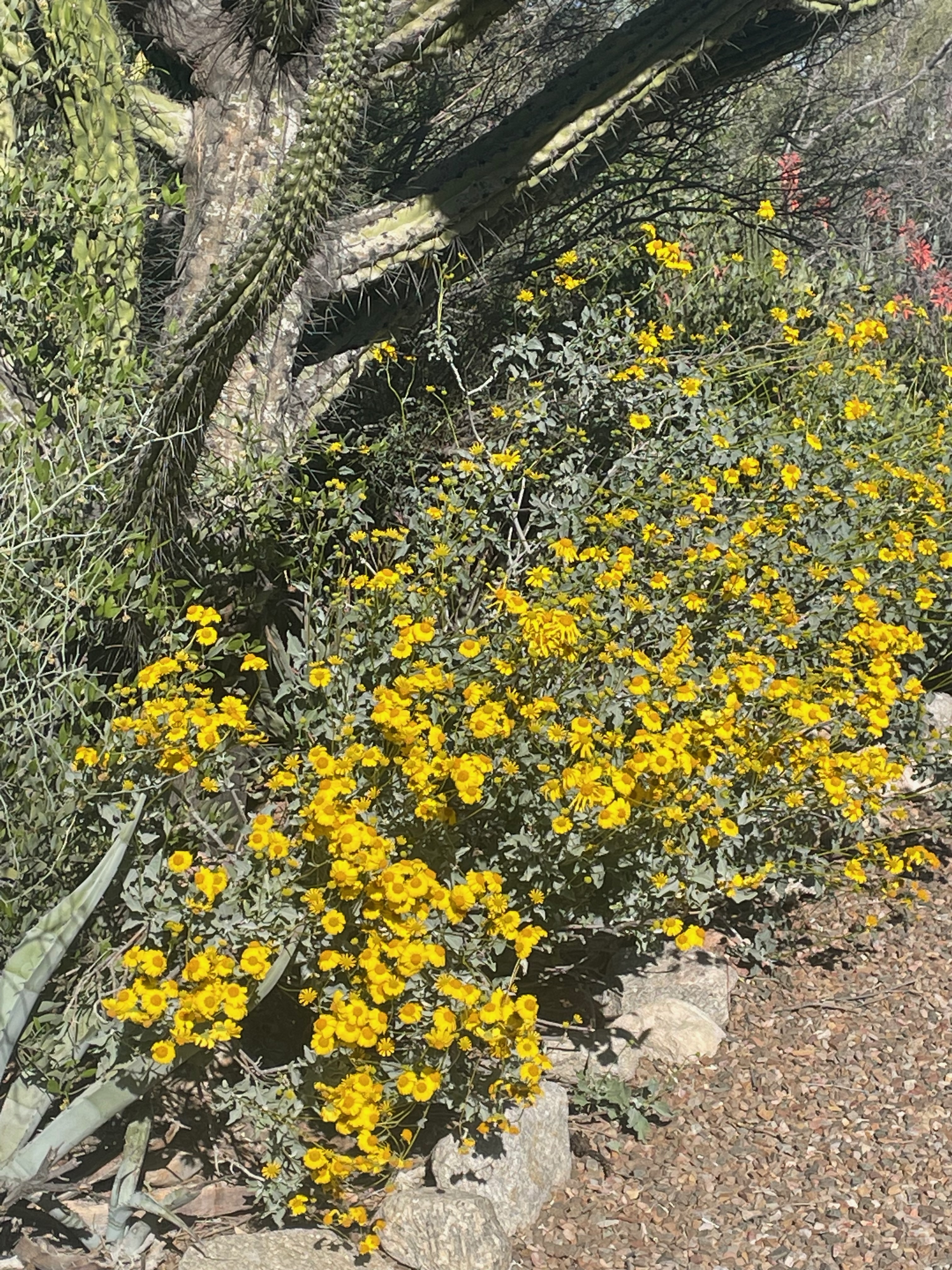 Brittlebush (Encelia farinosa), known as tohaws in O’odham, is spreading its glory over the Sonoran Desert this month!