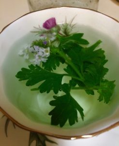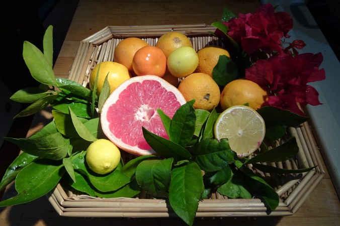 Scratch the rind of a lemon–especially a Meyer–and your sniff sense will soar into heaven. Add a wedge of lemon rind or tangerine rind to hot tea. Or harvest a couple of young leaves for a simply fine herbal tea!