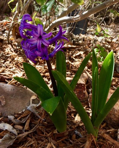 I was down on hands and knees in olfactory ecstasy, to sniff my lonesome but persistent hyacinth’s sweet bouquet. Each February it appears in my little orchard’s undergrowth to remind me that spring is on the way. (MABurgess)