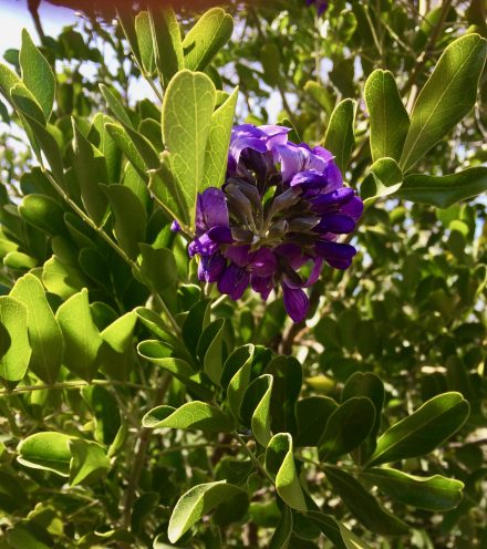 Mescalbean is a favorite ornamental from the Chihuahuan Desert planted in my Southern Arizona garden. Last night, walking from the driveway I was hit by the scent of grape Kool-aid. Finally traced it to the nocturnally-active flowers of this beautiful “Texas mountain laurel.”