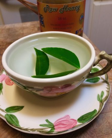 Steep 3-5 fresh young leaves of a lemon tree, tangerine or lime tree for a gentle no-caffein tea. Its aroma is a soothing gift….