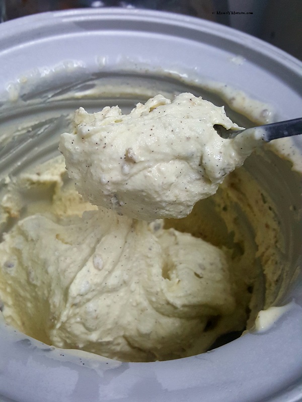 Soon it firmed up to soft serve. After a time in the freezer, it made perfectly delicious, not too hard. ice cream.