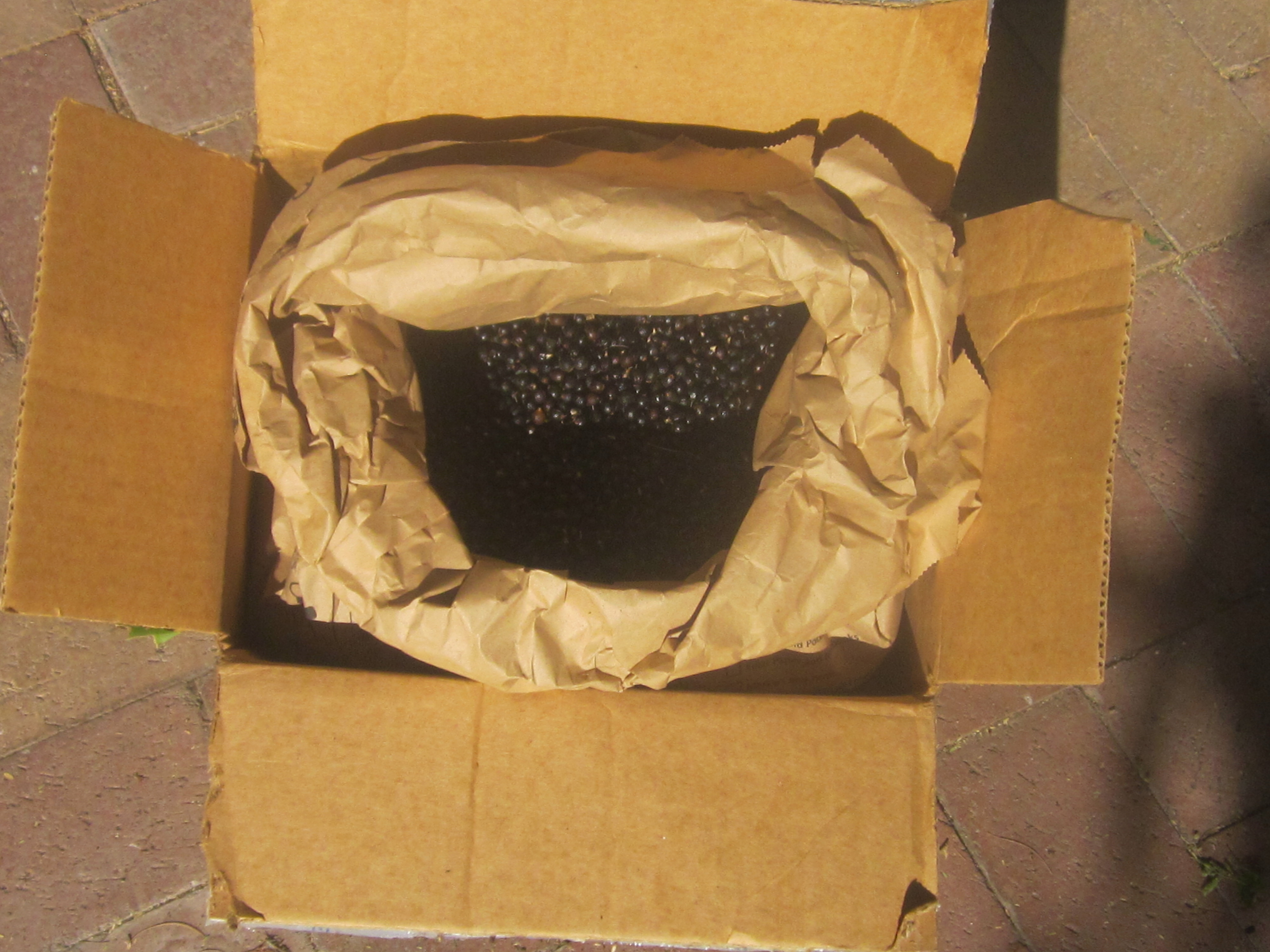 Washed and drained fruits of Washingtonia filifera in Tarahumara sifting basket, ready for snacking! (MABurgess photo)