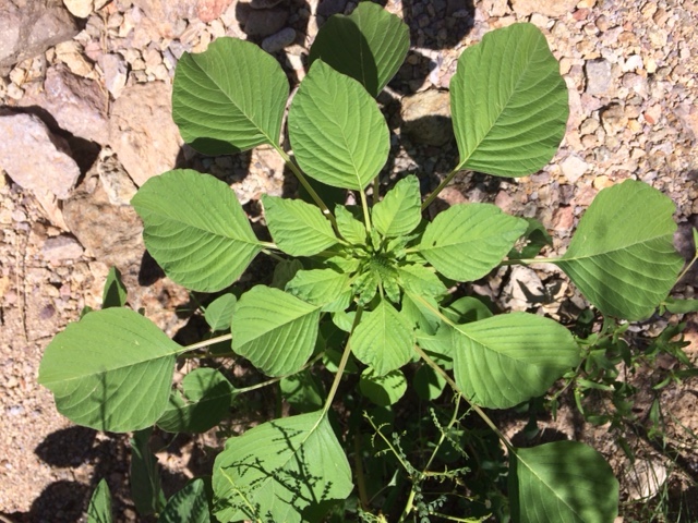 Caution: Here’s a trick plant that may look like Amaranth but it is a perennial that leafs out with summer rains, especially in the Tucson Mtns area–Ambrosia cordifolia–not good for eating–better for soil stabilization. (MABurgess photo)