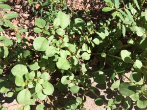 Caution: Another “trick plant” is this purslane- look-alike called “horse purslane”-Trianthema portulacastrum. It will taste a little soapy if you try it. (MABurgess photo)