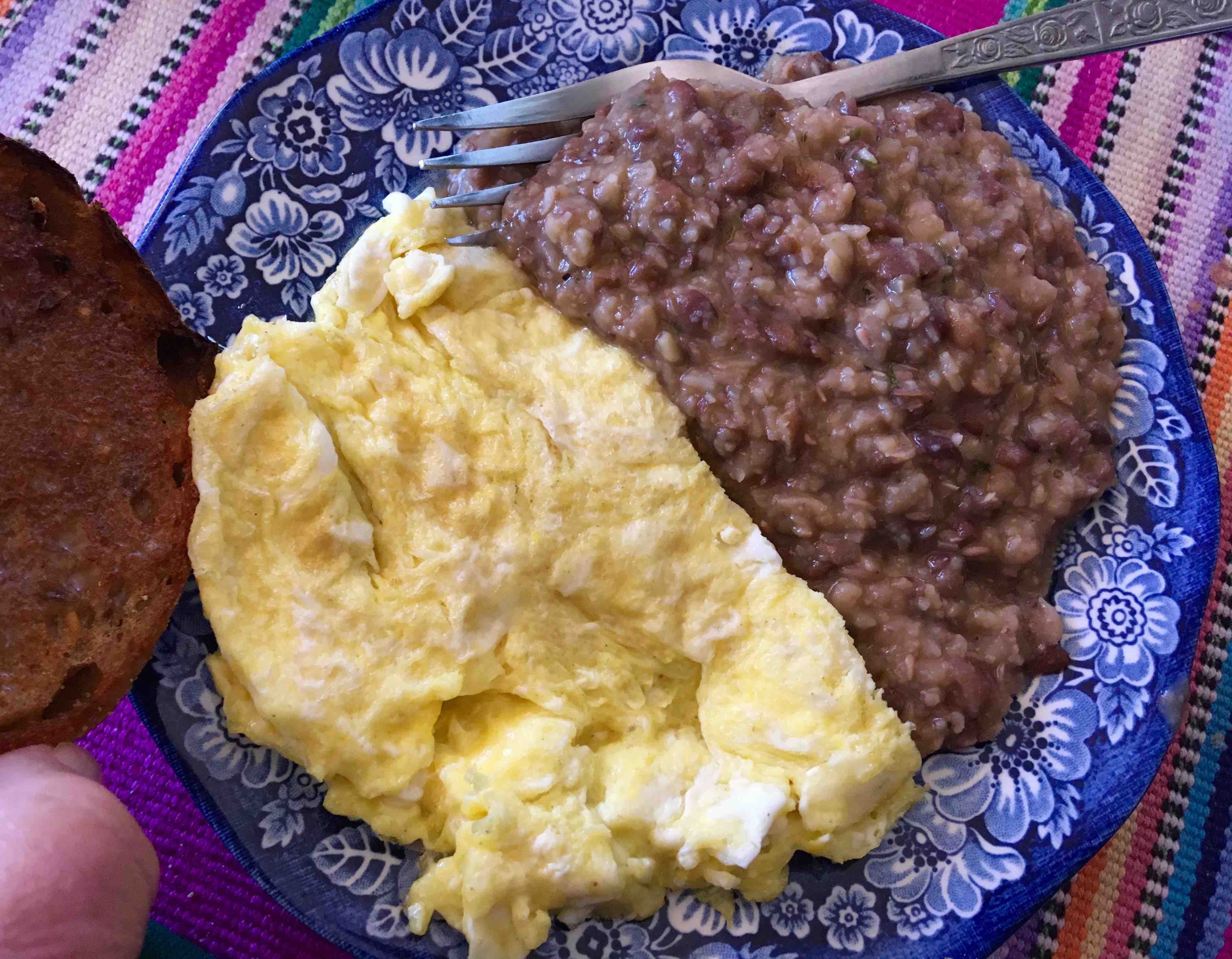 Partially mashed then refried teparies complement eggs and toast or tortilla for a hearty and delicious breakfast!