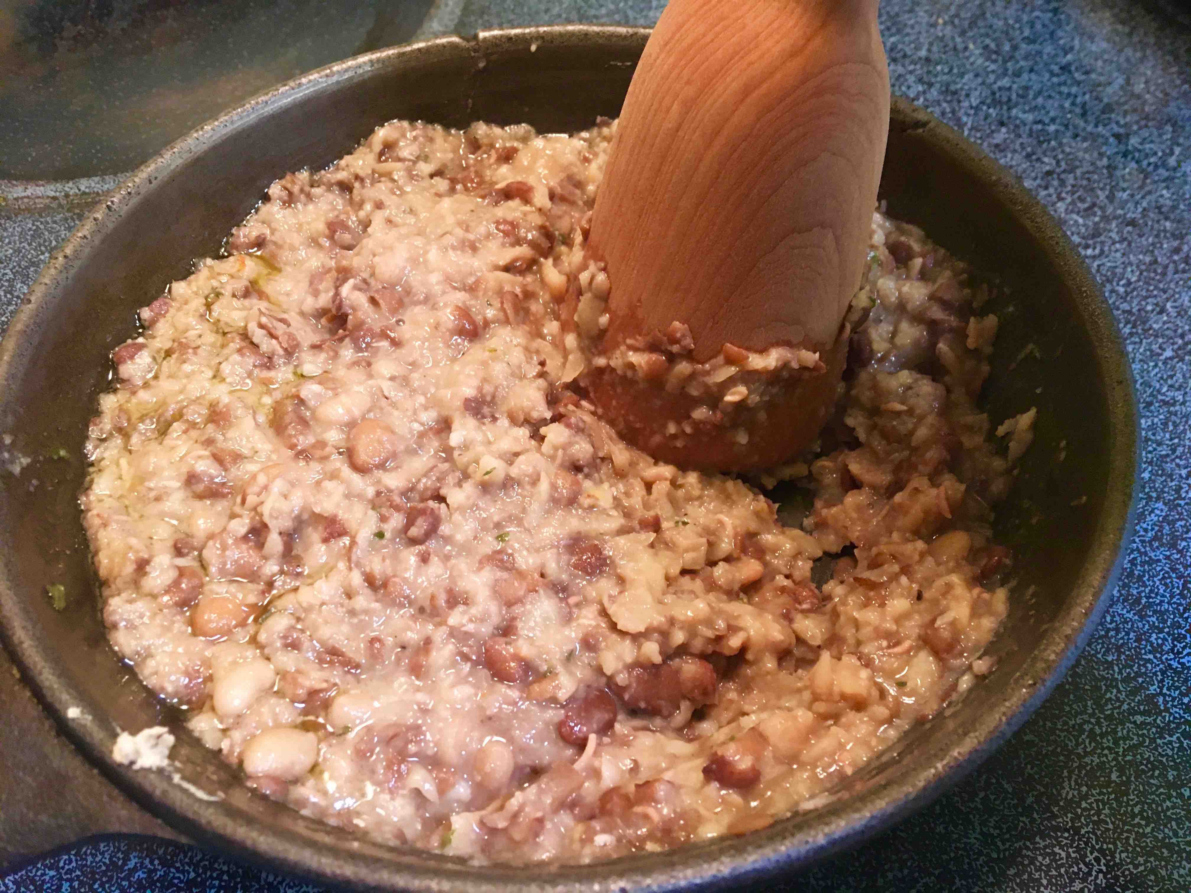 It is so easy to mash your cooked, drained teparies. To refry teparies, just add some olive oil or butter to your fry pan and mash them as they bubble–the good old fashioned way. Or the quick fix: whirl them to desired creaminess in the food-processor.