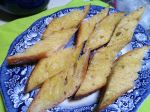 These baguette slices for other pintxos I cut flat then diagonally to make diamond bases for the Asparagus Spear Pintxos. (MABurgess photo)