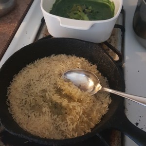To finish, I gently heated ghee and more Pipian Picante powder.