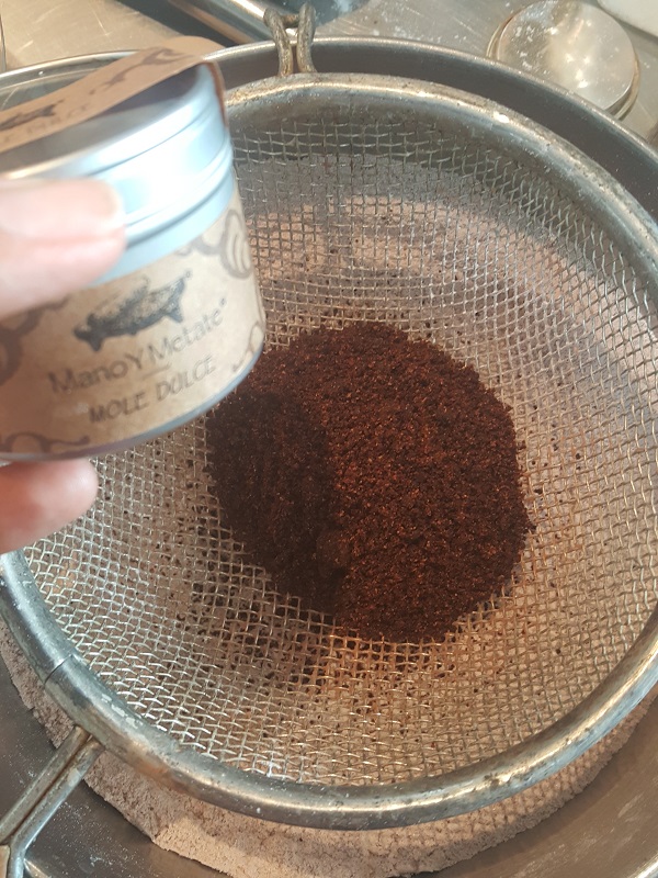 To finish, I gently heated ghee and more Pipian Picante powder.