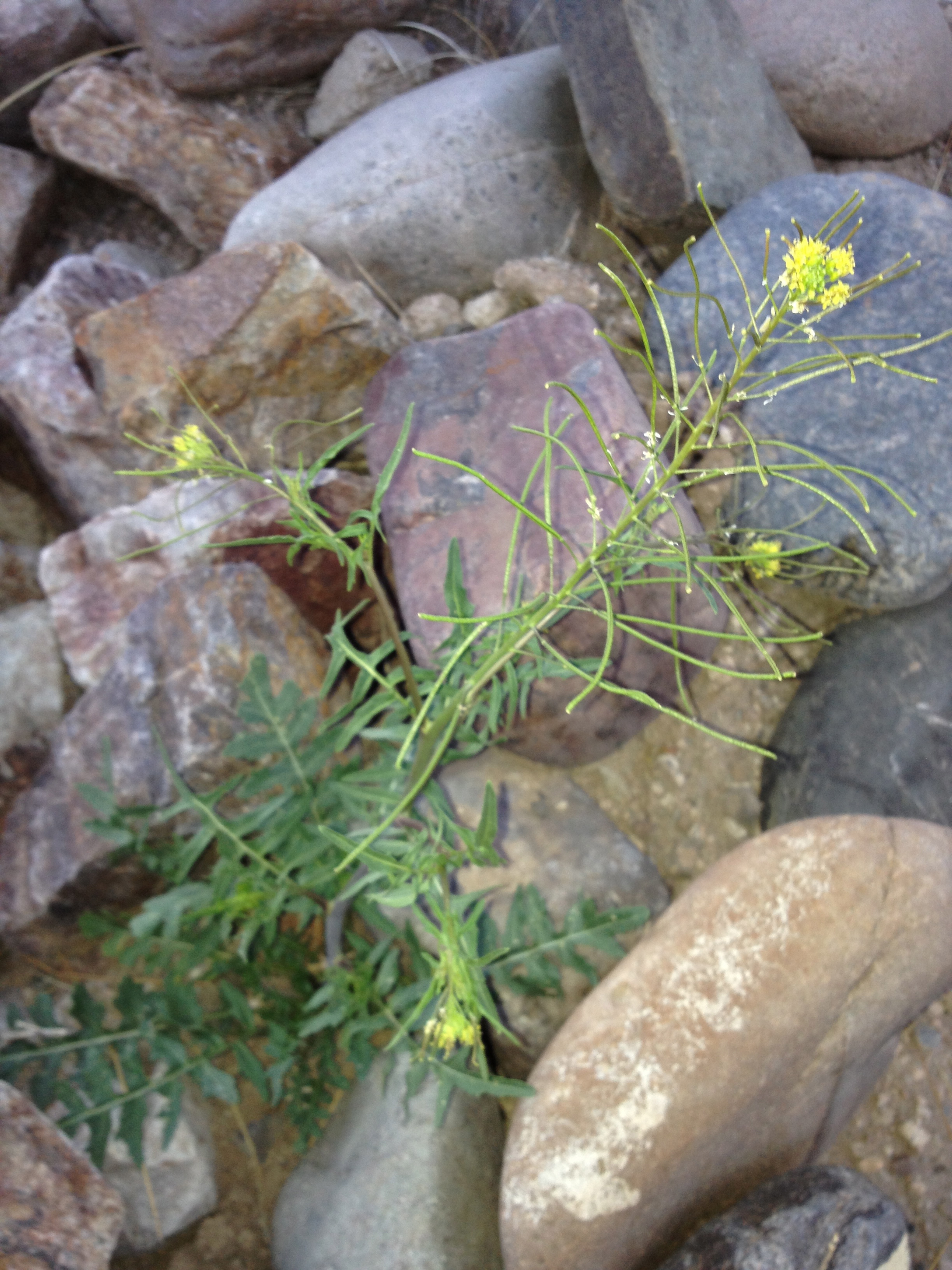 London rocket (read “wild arugula”) is everywhere, its greenery literally growing before our eyes in every low swale, rocky hillside, every ditch where water has run.  Sisymbrium irio is an introduced weed which we can enjoy with impunity—the more we eat of them the more we are removing competition for our beloved native plants.  So harvest away!  (A good rule of thumb is to collect at least 50’ from a road.  No need to ingest road dust and pollutants when there is so much to be found in friendly yards or out in the des.)