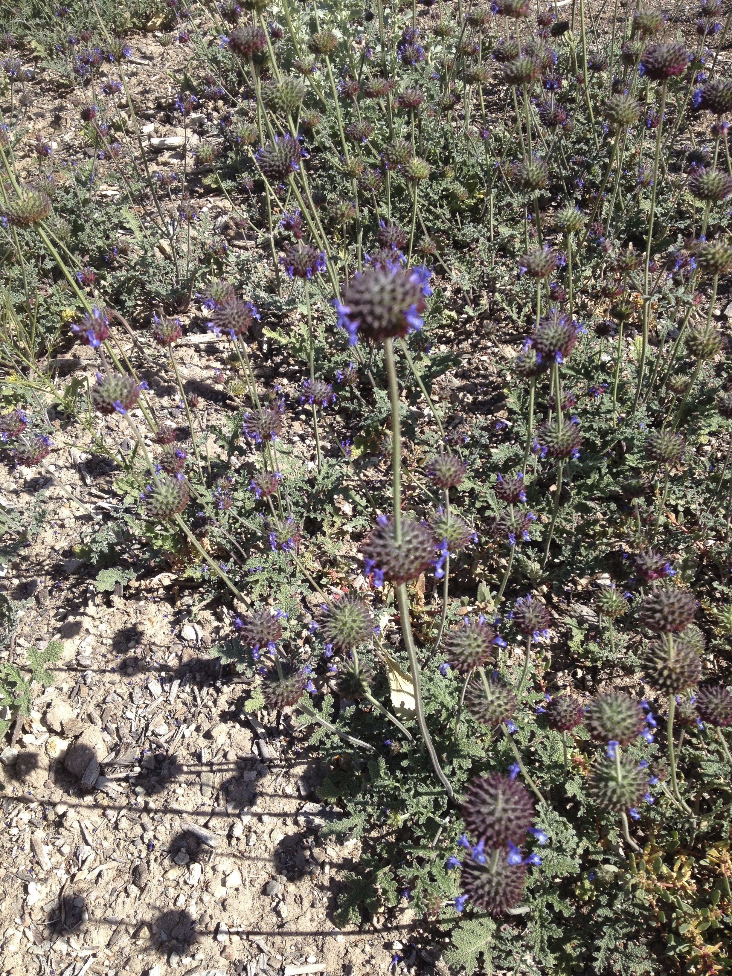 Hot February weather is telling our wild mustards, “Summer’s coming.  Better go ahead and bloom fast!”  Already we see tiny 4-petaled yellow flowers rising from the rosettes of deeply lobed leaves.  Small erect spikelets of seedpods (called siliques) stand out from the central stem.  Whole flower heads with seedpods are edible, and zingingly picante.  Sooner than we think, seedheads will mature and you can harvest their tiny mustard seeds for dressings or salad sprinkles.