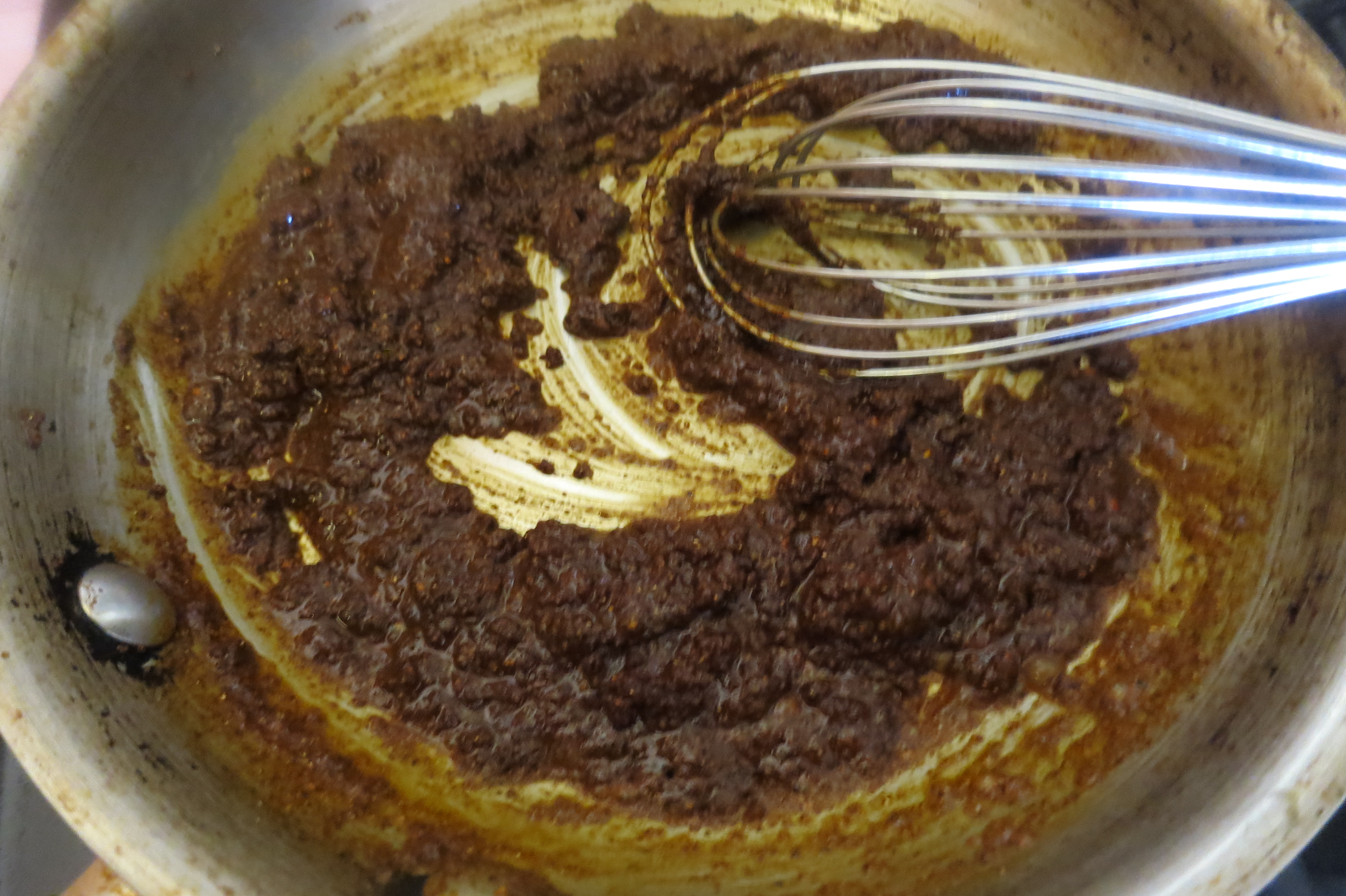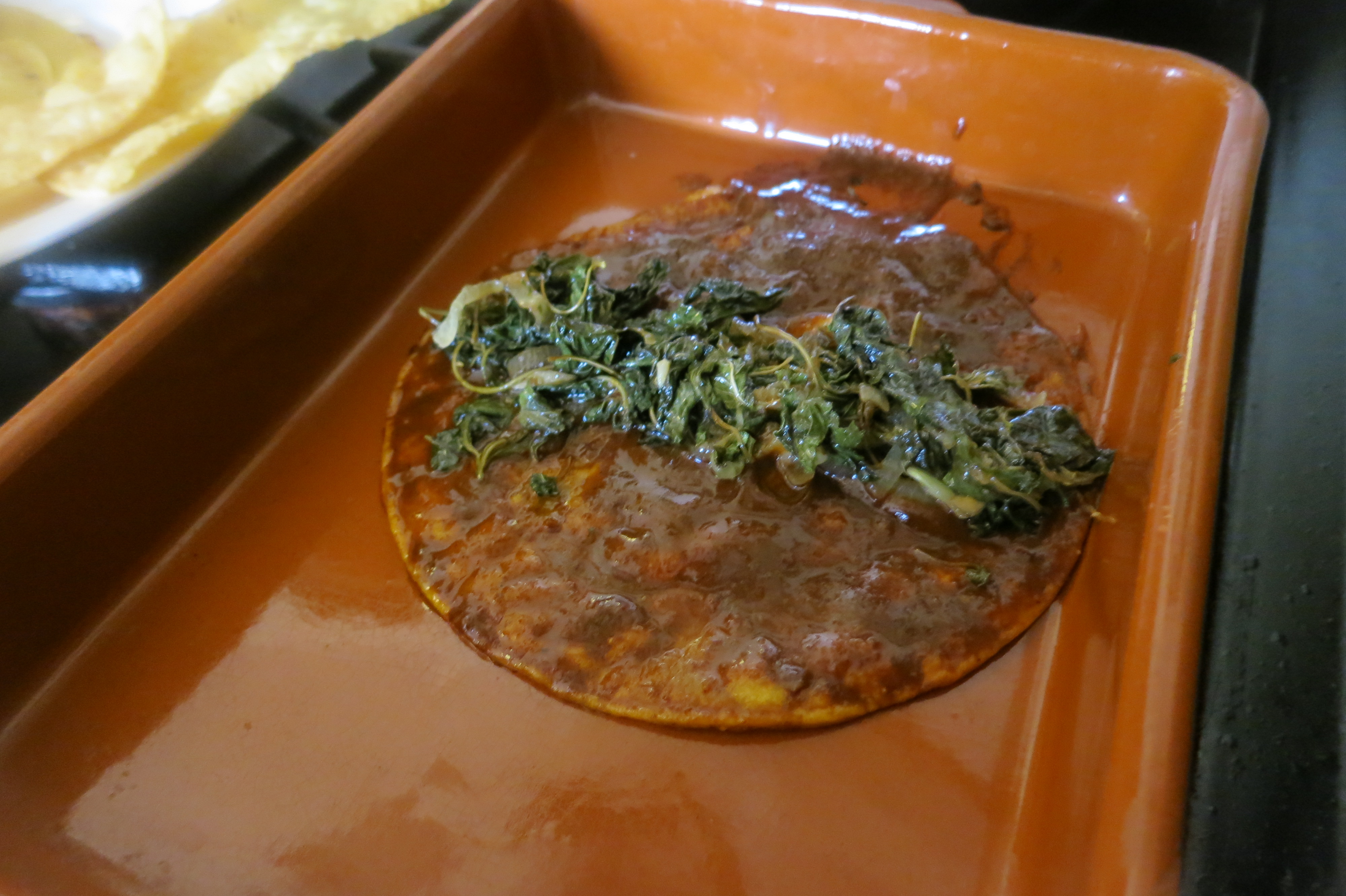 "Moon Beans" spiced with Pipian Rojo Mole from Mano y Metate makes an exceptionally festive vegetarian dish!  photo by Muffin Burgess
