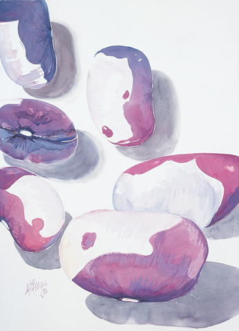 In Georgia O’Keefe-style, up close and intimate with heirloom beans–“Boyd’s Beauties” original watercolor by MABurgess