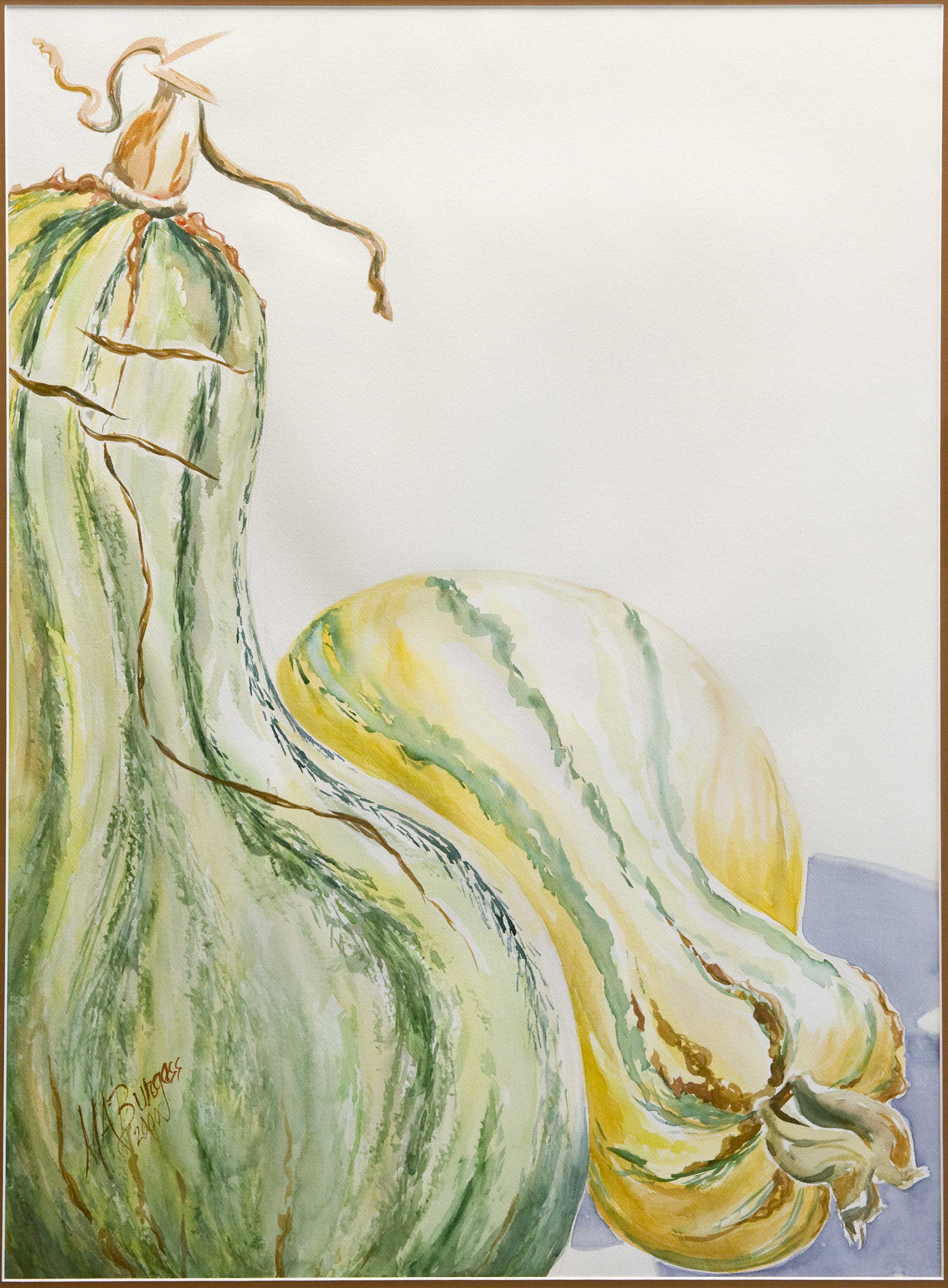 Shapely Dine Cushaw –a big-as-life watercolor by MA Burgess