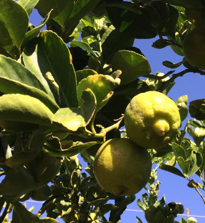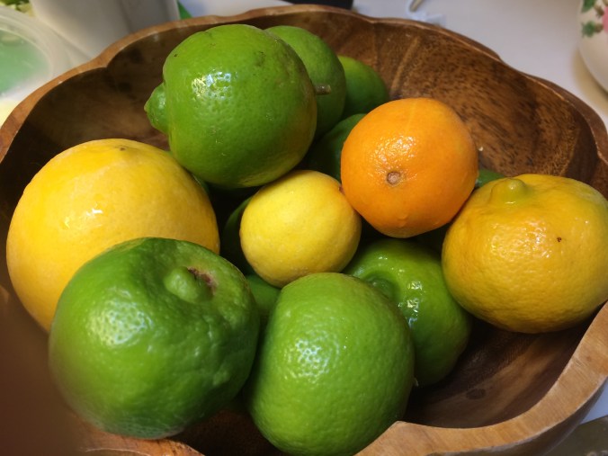 Citrus time again in Baja Arizona! I’ve harvested Meyer Lemon, Mexican lime, and tangerine from my trees, and I hope to buy an heirloom sweet-lime from Mission Garden to plant in mi huertita–my mini-orchard.