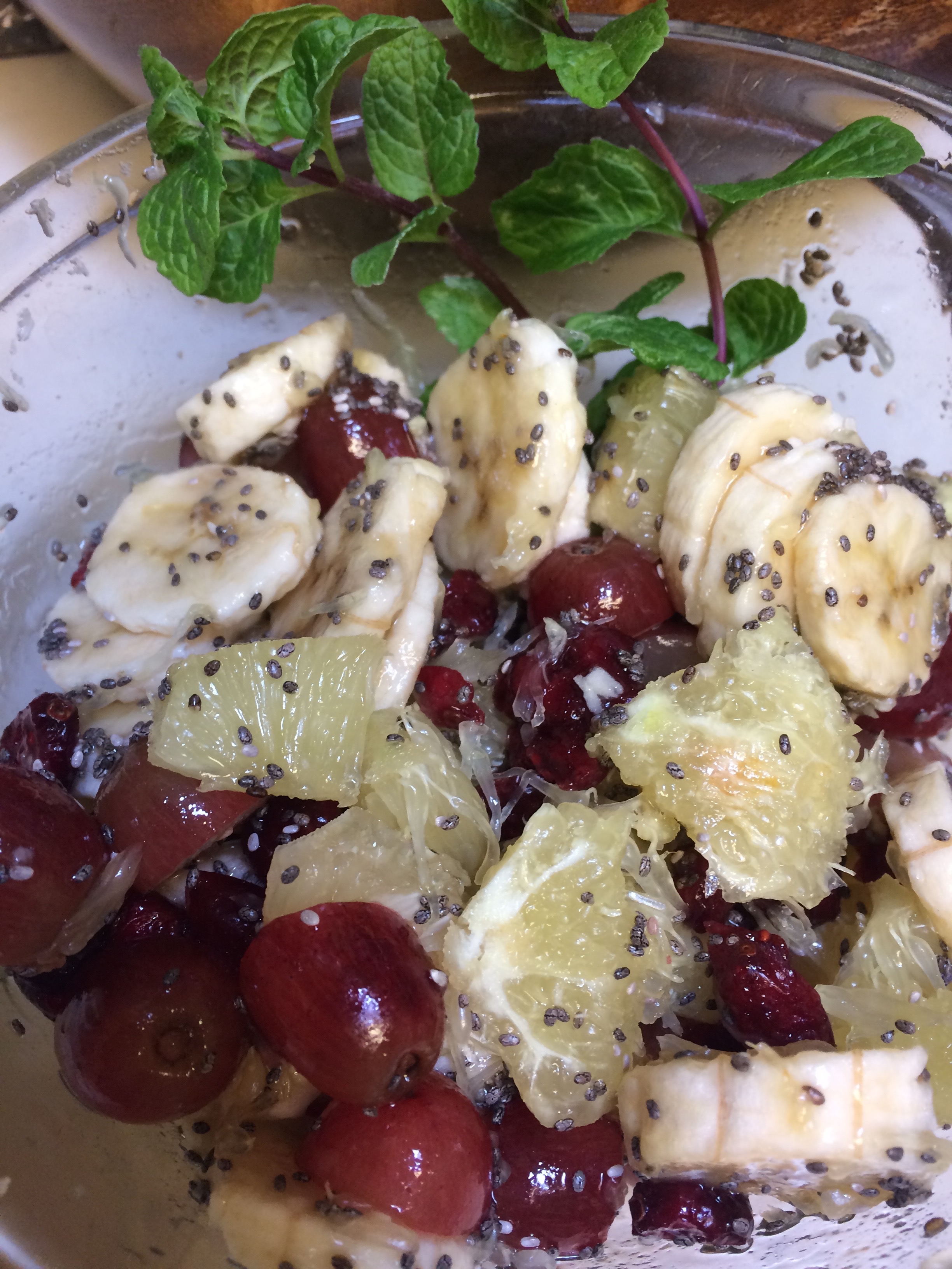 Peeled and diced sweet-lime fruit makes an incomparable aromatic addition to a fruit salad. Here sweet-lime chunks are tossed with sliced red grapes and bananas, dressed with chia seed and agave nectar.