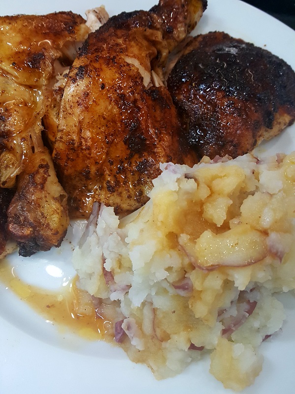 I considered making mole sauce to spoon on the plate, but instead put some of the drippings into and on top of the mashed potatoes. Delicious!!!!!