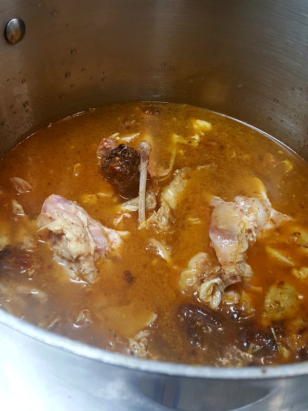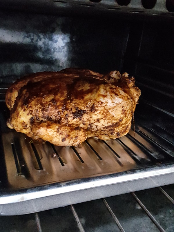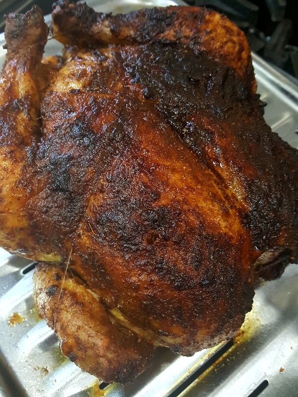 The bones and drippings made an incredibly rich colored broth with hints of mole. It was spicier than I thought it would be. I can’t wait to make it into soups, the best part of roasting a bird. Enjoy the weather and happy cooking!