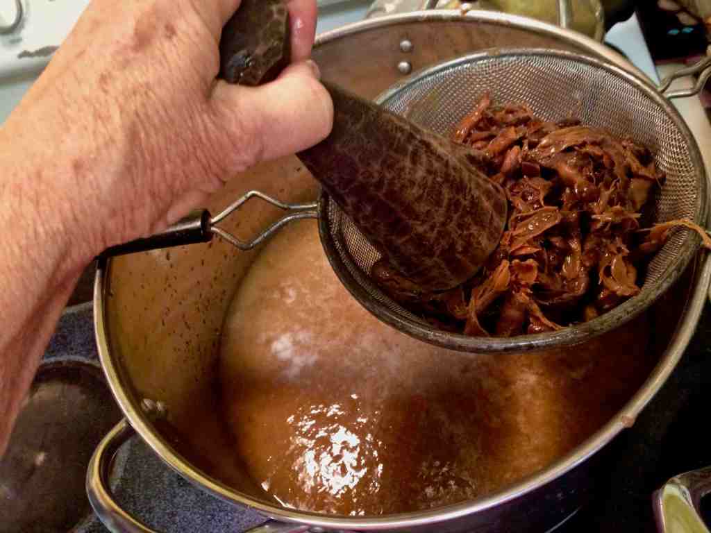 *** My secret to this “fruit marinade” is the smokey flavor of local Whiskey del Bac! Using spirits results in a fabulous liqueur “biproduct” to enjoy later. But, remember the words to that song “Oh we never eat fruitcake because it has rum, and one little bite turns a man to a bum……..” For the tea- totaler, any fruit juices will work for re-hydrating the dried fruit chunks: try apple cider, prickly pear, pomegranate juice, cranberry. Then save the liquid after decanting as it will have delicious new flavors added.