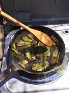 Tohono O’odham ha:l–the traditional desert pumpkin with its corky attachment and rich orange center–is ripening in autumn heat at Mission Garden…..